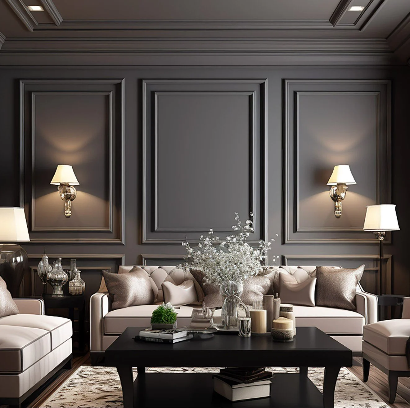 A paneled feature wall in a living room