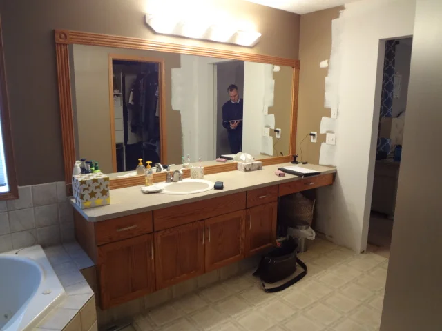 This young busy couple knew 2 things for sure. One; their 90’s master en-suite bathroom needed an overhaul, and two; they didn’t have the time or know-how to even get it started. Although it had a huge vanity, that was about the only thing it had going for it.